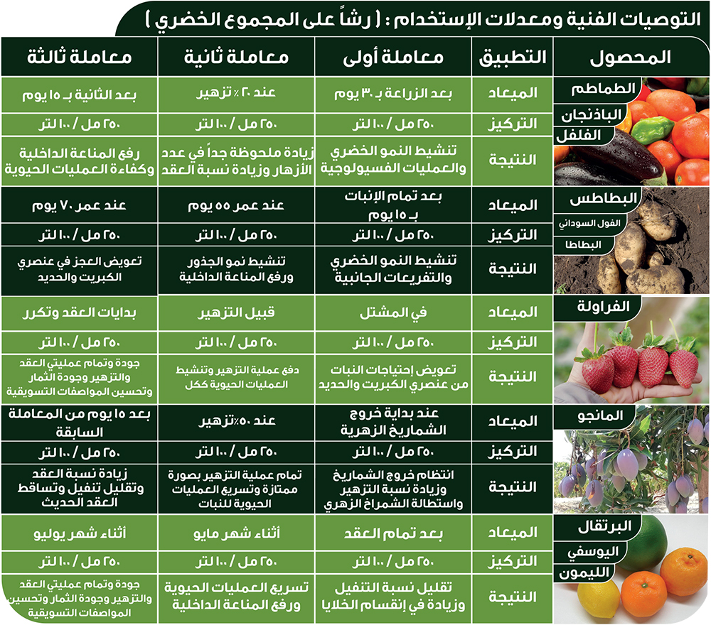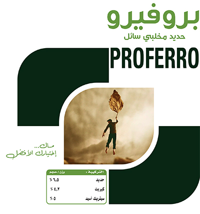 – بروفيرو سماد حديد مركب سائل يحتوي على الحديد المعقد على الأحماض العضوية والدبال بالإضافة إلى البروتين النباتي والسكريات المتعددة .