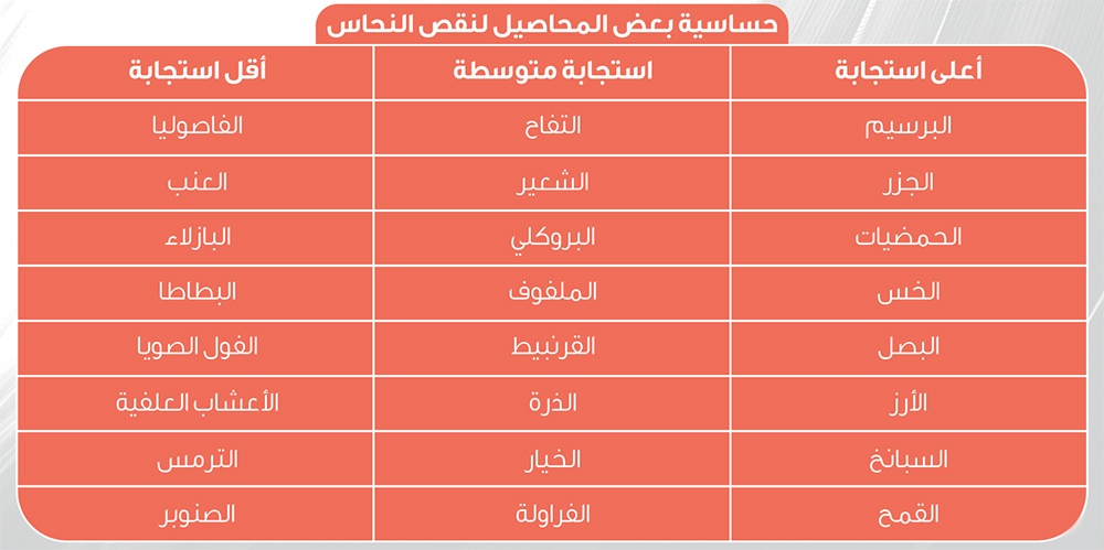 أعراض نقص النحاس على النبات (عنصر غير متحرك)