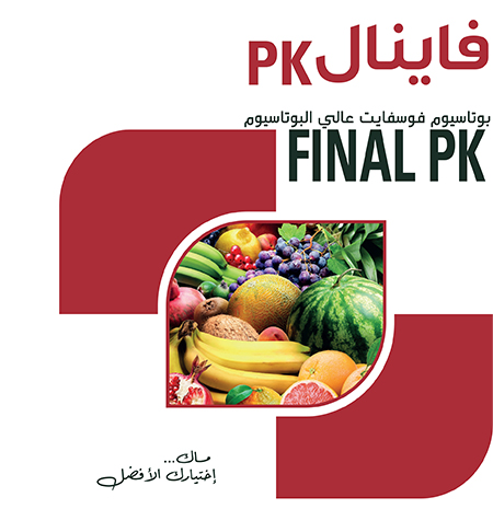 فاينال PK سماد بوتاسيوم فوسفايت سائل , عالي التركيز في عنصري الفوسفور والبوتاسيوم , من أهم خصائصه أنه يعمل على تقوية وزيادة المناعة الطبيعية للنبات بشكل عام وزيادة مقاومته للفطريات بشكل خاص وبذلك فانه يقلل من استخدام المبيدات الفطرية , كما أنه يزيد من قدرة النبات على تحمل الظروف المناخية غير المواتية كالصقيع والبرودة الشديدة والإجهاد البيئي , بالإضافة إلى أن النباتات المعاملة بمركب فاينال PK ينتج محاصيل أكثر تحملا لظروف التخزين والنقل المختلفة إلى جانب الجودة العالية من حيث الأحجام والألوان والتناسق .