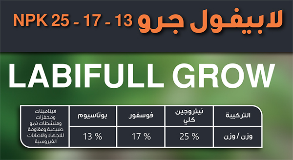 لابيفول جرو سماد يعمل على رفع كفاءة وحيوية النبات وزيادة سرعة انقسام الخلايا وزيادة مساحة الورقة وبالتالي زيادة عملية التمثيل الضوئي .