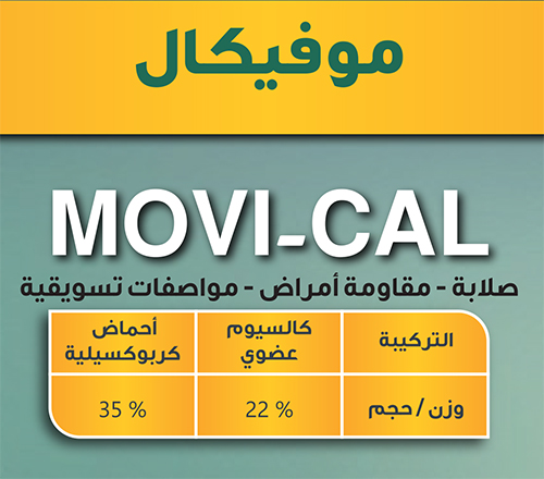 تم تصميم وصياغة مركب موفيكال لتوفير احتياجات النبات من عنصر الكالسيوم في صورة عضوية ميسرة وسهلة الامتصاص وسريعة التمثيل داخل النبات بنسبة 100 % في فترات النمو المختلفة .