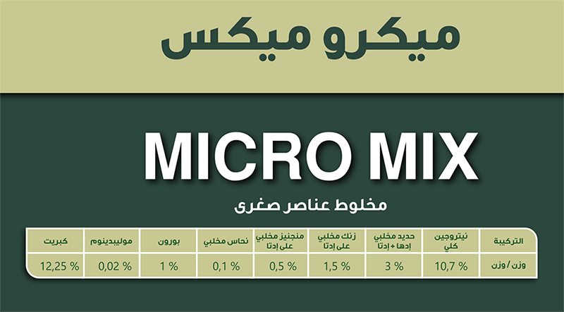 ميكرو ميكس يحتوي على جميع العناصر الصغرى والنادرة بصورة نقية عالية الجودة .